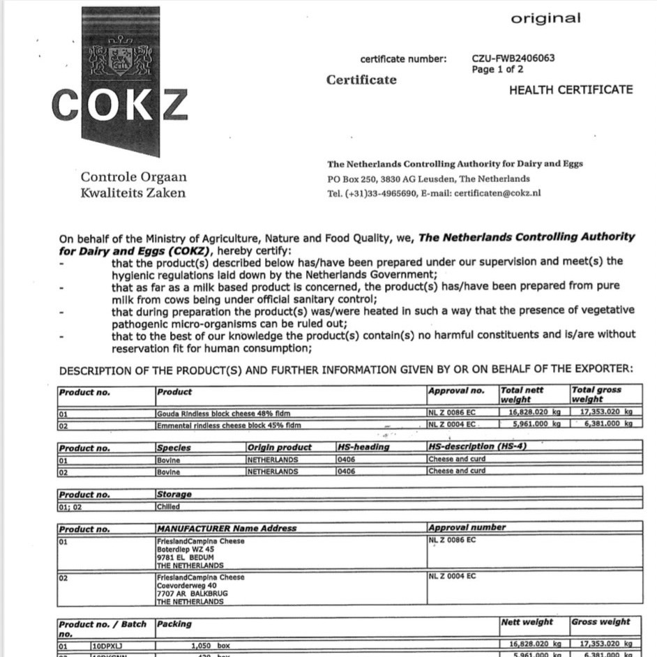 Origin: Holland 🇳🇱 | Producer: FrieslandCampina | Packed by: Dairy Valley Thailand This is authentic Dutch Gouda, imported directly from the Netherlands’ largest dairy producer, FrieslandCampina. The cheese arrives in Thailand as large rindless blocks (16 kg), then is diced and repacked locally under the Dairy Valley label for easier handling and distribution. Flavor & Texture Creamy, mild, slightly nutty Semi-hard texture, melts smoothly A versatile cheese loved worldwide Why Bangkok Beef Gouda? ✅ Authentic Dutch origin – FrieslandCampina Holland ✅ Convenience – pre-diced into 0.5 kg bags, ready to use ✅ Frozen for freshness – longer shelf life, less waste ✅ Better value – while retail Gouda in Thailand ranges 317–569 THB/kg, Bangkok Beef offers it at 250 THB/kg Specifications Label: Dairy Valley (Thailand) Net weight: 0.5 kg x 2 bags. 1 kilo per unit Storage: Keep frozen (-18°C or below) Shelf life: 12 months frozen; 7 days refrigerated after thawing Bangkok Beef brings you the real story — Dutch Gouda direct from FrieslandCampina, repacked under Dairy Valley, now at wholesale price for Bangkok kitchens and food lovers.