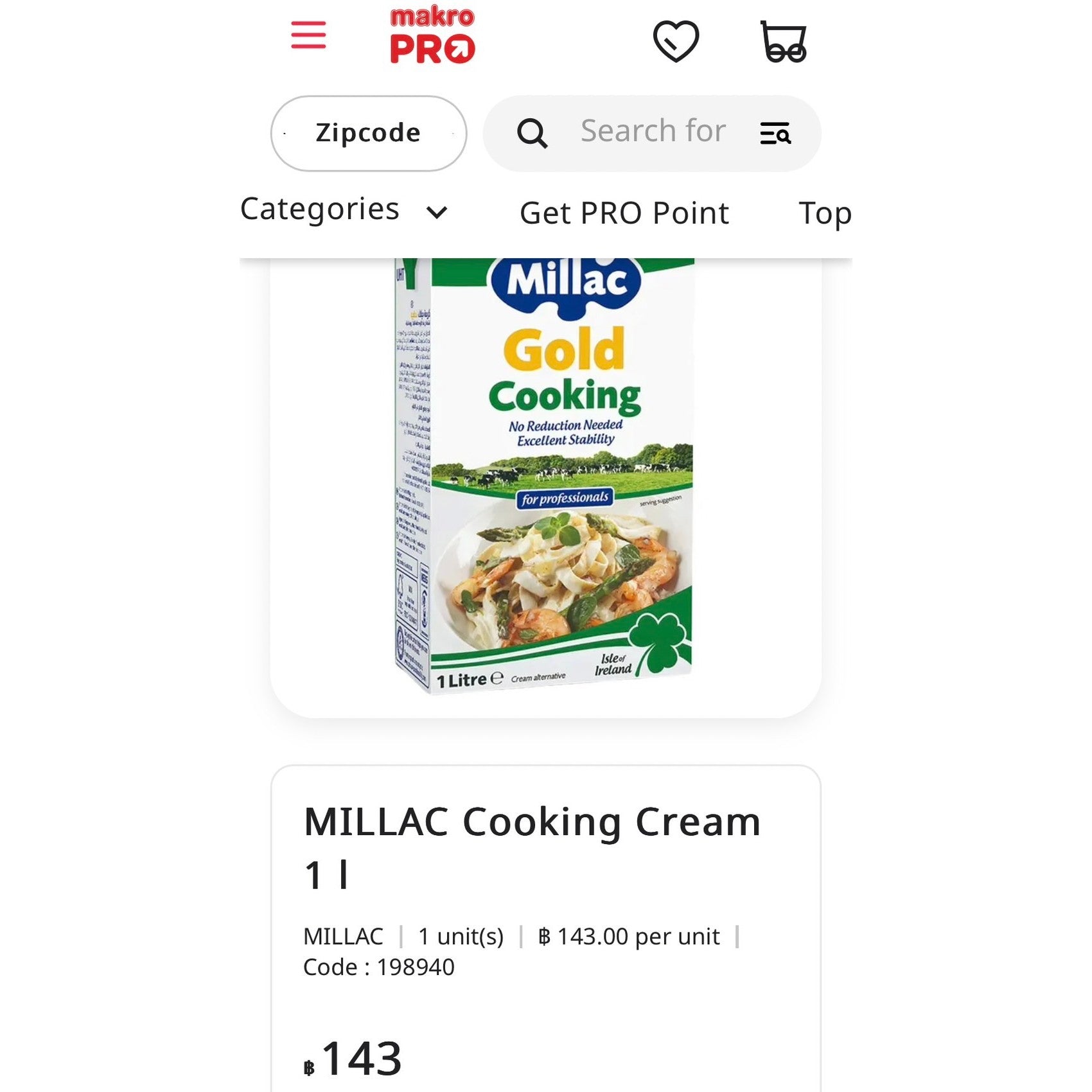🟩 Overstock Clearance — Millac Gold Cooking Cream (1 L) 💥 Buy 1 @ ฿143 — Get 3 FREE! 💥 🔥 Over 75% off Makro price! 📦 Best Before: 28 Nov 2025 | Safe to Freeze up to 6 Months After ✅ Why Chefs Love It UHT shelf-stable — no refrigeration needed before opening Heat & acid stable — won’t split in peppercorn, tomato, or lemon sauces No reduction needed, cooks fast and smooth Perfect substitute for dairy cream in any recipe Contains real Dairy cream for better flavour and creamier mouthfeel! 15% fat 💡 Store unopened below 20 °C — room temperature (24 °C) is fine if cool & dry. Refrigerate after opening and use within 7 days. 🍖 Try It with Peppercorn Steak Sauce Ingredients 250 ml Millac Gold Cooking Cream 2 Tbsp crushed black peppercorns 1 Tbsp butter or oil 1 tsp Dijon mustard 1 Tbsp brandy (optional) Salt to taste Method 1️⃣ Melt butter, toast peppercorns 30 sec. 2️⃣ Add brandy (optional), simmer briefly. 3️⃣ Pour in cream and mustard, stir well. 4️⃣ Simmer 3–5 min until thick and smooth. Restaurant-quality sauce in minutes — no curdling, no waste.